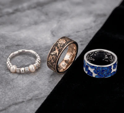 Ringe, die sich vom Gewöhnlichen abheben. Wir arbeiten mit widerstandsfähigen Metalllegierungen und präzisen Anwendungen, um Accessoires mit Persönlichkeit zu liefern. Von Vintage-Stil bis hin zu emaillierten Blumenmustern – finden Sie das Schmuckstück, das Ihre Hände zur Geltung bringt.